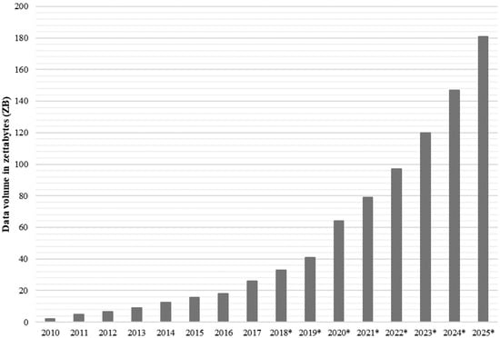- IDC & Statista. Volume of Data/Information Created, Captured, Copied, and Consumed Worldwide from 2010 to 2020, with Forecasts from 2021 to 2025. 2023. Available online: https://www.statista.com/statistics/871513/worldwide-data-created/ (accessed on 10 April 2024).