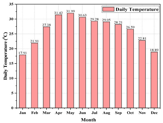 Figure 10 depicts the daily temperature at the location. The average scaled temperature is 26.34 °C. Solar PV output is directly affected by temperature. As temperature rises, PV efficiency decreases due to increased resistance [44].