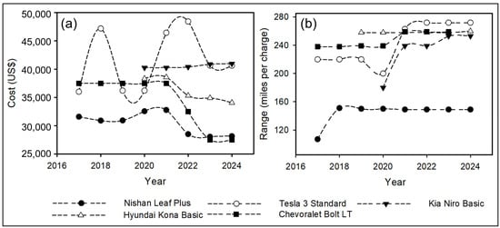 Presently, the largest obstacle is still the cost of EVs. The public and business sectors must prioritize making the choice to decarbonize road transportation as much from an environmental standpoint as from an economic one. According to Cox Automotive, the average sale price of a new vehicle in the U.S. in February 2024 was USD 47,244, down 2.2% from February 2023 and 5.4% from the market peak in December 2022 [114]. A surge in new-vehicle inventory in the U.S., downward price pressure, and higher incentives appear to be key drivers of the market’s current momentum. CarEdge reports that the average price of a new electric car in February 2024 decreased by 21% compared to February 2023 [115]. Some analysts believe that EV prices may go down further and stabilize once they become a truly mainstream mode of transport.