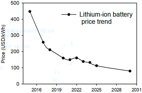 - Lithium-Ion Battery Price Worldwide from 2013 to 2023. Statista Research Department. 8 December 2023. Available online: https://www.statista.com/statistics/883118/global-lithium-ion-battery-pack-costs/ (accessed on 15 March 2024).
