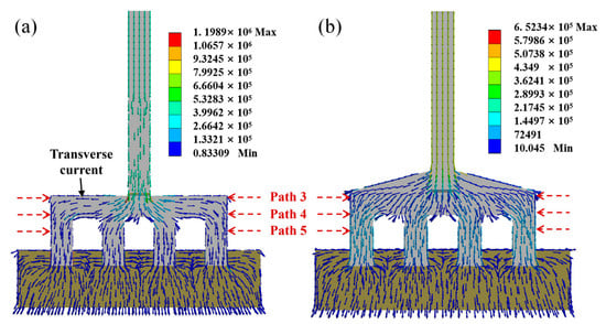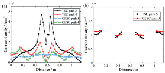Current density distribution of TSC (a) and CESC (b) (a. path 3 and path 4; path 5).