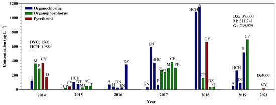pesticides; surface water; river; concentration; organochlorine; organophosphorus; pyrethroid 1. Introduction