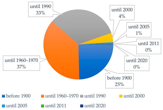 Number of dwellings divided into building construction period.
