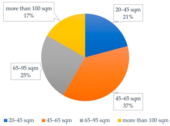 Regarding the average size of residential buildings, there are no official statistical data available. Therefore, an average and a proportion were calculated based on the questionnaires administered to the island’s inhabitants. The most common size is between 45 and 65 sqm.