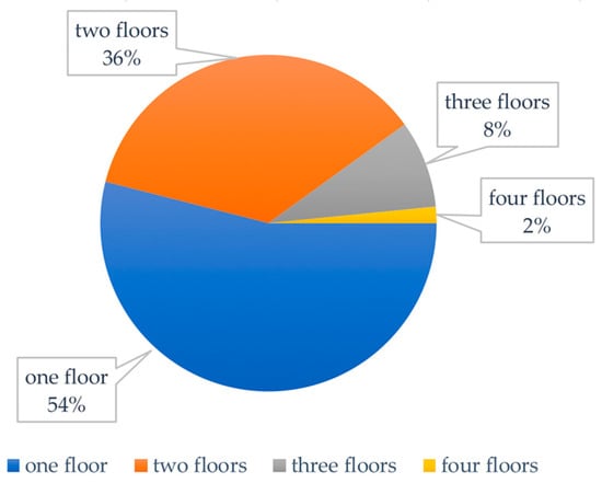 Number of residential buildings divided into number of floors above ground level.