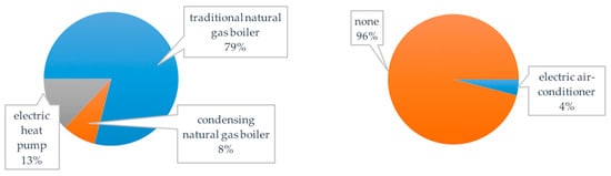Cooling systems (air conditioners, splits), on the other hand, are much less common, being present in only 4% of the dwellings [59].