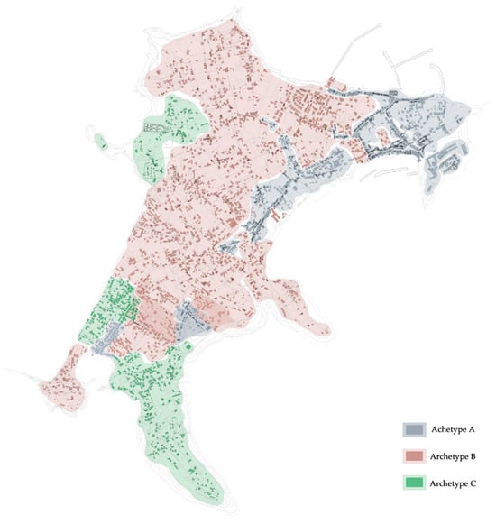 This approach allows for a comprehensive understanding of diverse architectural and environmental conditions within the island’s built environment. Aggregated data analysis facilitates the identification of patterns and correlations that might not be evident through individual assessments. This macro-level perspective enables more effective and scalable solutions for energy efficiency and sustainability. The archetypalization process further refines this by categorizing buildings into representative types or archetypes based on their structural and environmental characteristics. This classification aids in the development of targeted intervention strategies that address the specific needs and conditions of different building types.