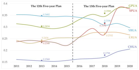 5.2. Discussion on the Spatiotemporal Evolution Trends of GDE in the YRB