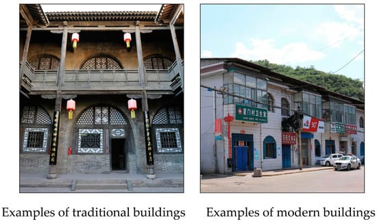Furthermore, with the passage of time and the rise of modern building practices, the core characteristics of traditional buildings have gradually weakened. The “gene” characteristics of traditional buildings have faded or even disappeared in new building practices, resulting in a disconnect and a lack of coordination between old and new styles (Figure 8). Modern construction materials such as reinforced concrete have increasingly replaced brick and timber structures, and building styles have begun to be influenced by external modern designs. Traditional features like the Brick arch cave dwelling and the Courtyard of three houses layout have been simplified or replaced. This shift is not just a change in building form but also a reflection of modern society’s neglect and diminishing appreciation for the “gene” characteristics of traditional buildings. As important carriers of village culture, traditional buildings hold the historical memory and social fabric of the village, making their preservation and effective continuation all the more urgent.