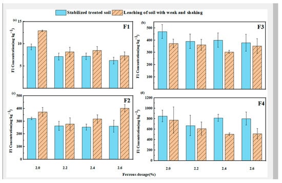 Results of soil As concentration after leaching with weak acid and shaking treatment. (a) F1; (b) F2; (c) F3; (d) F4.