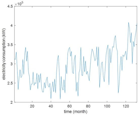 The data used in the training phase are presented in Figure 9. The data illustrated in this diagram have been commonly used in both ANN and LSTM methods. The graph contains monthly electricity consumption data for a period of 120 months. These data are obtained from invoices and have been verified for accuracy.