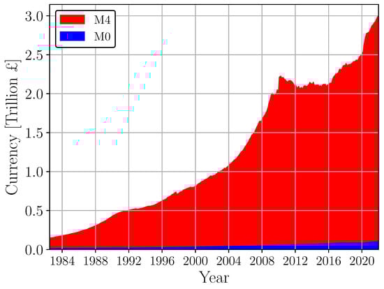 - BOE. Monthly Amounts Outstanding of M4 (LPMAUYN); Bank of England: London, UK, 2022. [Google Scholar]