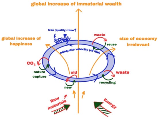 Indeed, if we turn to the question of saving the planet—and ourselves—from apocalyptic destruction resulting from our past and ongoing economic activities, there are no easy answers science may provide us with. Some scientists, for instance, meteorologists, take on the role of Cassandra and tell us that we urgently need to reduce our carbon dioxide (CO2) emissions if we want to stay within the “acceptable” 1.5 °C limit to global warming, risking our own extinction otherwise [,]. There are fewer than five years left on their clock before we reach this 1.5 °C “milestone”, and this is not really a lot. Their standpoint is fine, yet they do not tell us how to achieve this goal, either now, in five or in fifty years. Others try to be more pragmatic and specific [,,]. They bank on “green technologies” and circular economies to generate infinite prosperity within our planetary boundaries, again without being specific when it comes to details and policies to implement them. Still others, such as the Club of Rome, have questioned and still question if a finite planet is actually principally (cap)able to bestow us with infinite material wealth [].