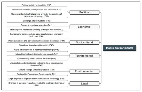 In the early stages of this study, some risks were assessed as less significant and therefore removed from the pairwise comparison matrix. These excluded risks encompassed Bulk Purchasing Arrangements, the Disposal of Medical Technology no longer needed by the facility, and certain macro-environmental factors, particularly those related to sociocultural and legal dimensions as shown in Figure 2.