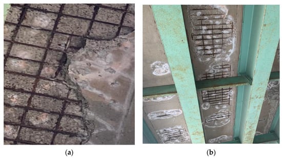 To counter these effects, several strategies are recommended, such as using a low water-to-cement ratio to produce less permeable concrete, incorporating supplementary materials such as fly ash, and ensuring adequate concrete cover over the reinforcement [19,20]. However, an emerging challenge is climate change, which exacerbates the risks associated with chloride-induced corrosion. The Intergovernmental Panel on Climate Change (IPCC) highlighted that changing climate conditions, particularly rising temperatures and varying humidity levels, are likely to accelerate chloride penetration, further threatening the durability of RC structures [21,22,23,24,25,26,27,28]. In Canada, infrastructure has deteriorated because of the severe climate and lack of maintenance, which forced the Canadian government to spend 300 billion Canadian dollars to bring the distressed infrastructure up to an acceptable level, according to Ali and Mirza [29]. A real example of extensive corrosion deterioration caused by the application of extensive chloride concentration on the top surface of the RC bridge deck during the winter season is the Gardiner Expressway, located in Toronto City, Canada. It is a critical piece of transportation infrastructure, providing access to downtown Toronto from the surrounding suburbs of the Greater Toronto area. Approximately 140,000 vehicles pass through it daily on weekdays. Corrosion is visibly apparent in different RC members, especially in the bottom parts of RC decks, as shown in Figure 1.