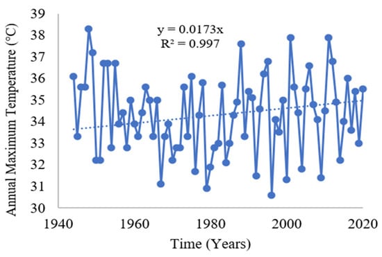 Canada’s weather and climate vary significantly by province and season. Toronto has a continental climate with warm summers and winters marked by heavier precipitation. Historical data from 1943–2020 show that the annual maximum temperature in Toronto has increased linearly, as shown in Figure 3. This trend suggests that summer heat will continue to rise in the future.