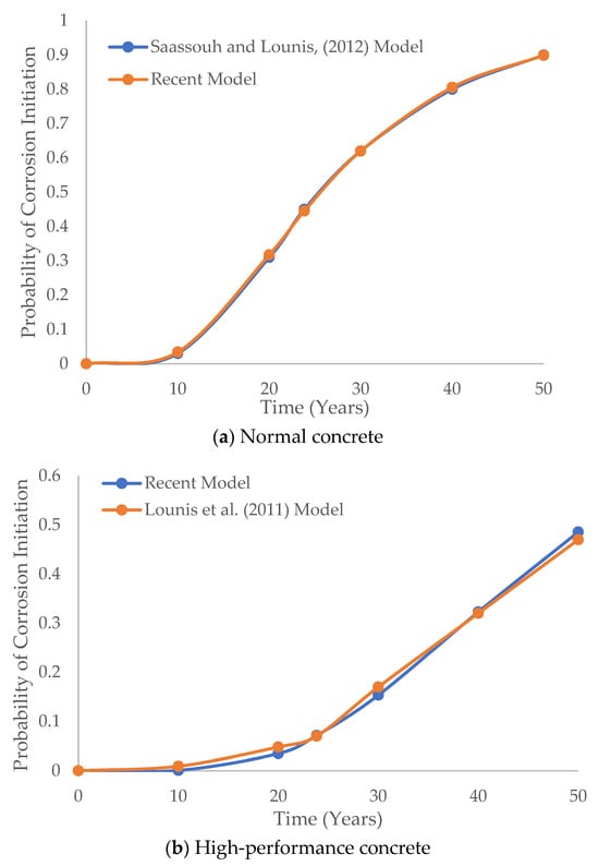 3.5. Validation of the Probabilistic Chloride-Induced Corrosion Initiation Model