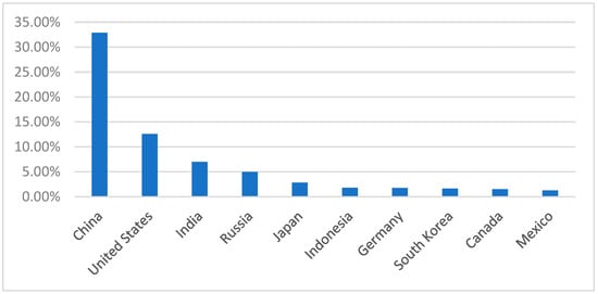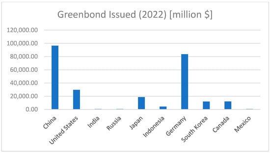 The countries included in the analysis, which have the highest share of global carbon emissions as of 2022, are listed in Figure 1. The green bond issuance amounts of these countries for 2022 are shown in Figure 2. When Figure 2 is examined, it is seen that China made the highest amount of green bond issuance. Germany and the USA followed China. Issuing green bonds is more prevalent among developed countries with high carbon emissions, yet the remarkable green bond issuance by China, an emerging economy, should not be overlooked.