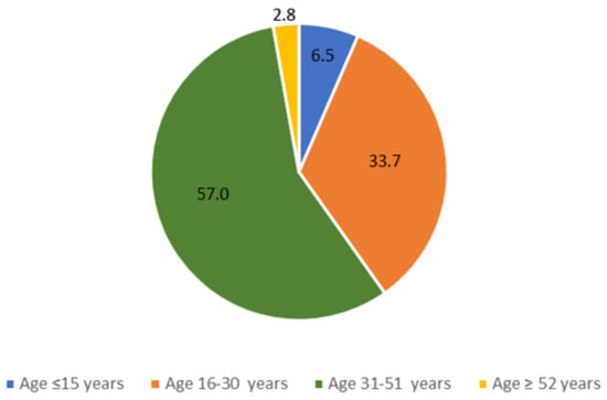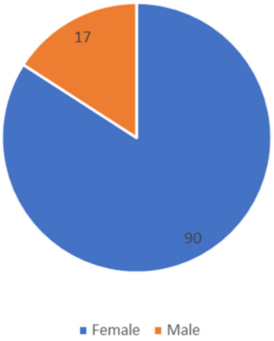 The online questionnaire was filled out by 107 people (90 women and 17 men) (Figure 1). The largest percentage of respondents (57%) were aged 31–51, while there were only three respondents over 50+, which made up 2.8% of the entire sample (Figure 2). The respondents live in the territory of eight counties, of which the most represented respondents are from continental part of Croatia. Most of respondents are from urban areas (91.3%), and of that, 38.4% live in the capital city. Alencar et al. [21] had a similar sample of respondents in their research on consumer opinion on gluten-free products. The participants in their research were mostly women (91.2%), aged 41 to 50 with a university education (45.4%).