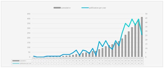 Number of papers published yearly and cumulative from 1990 to 4 September 2023.