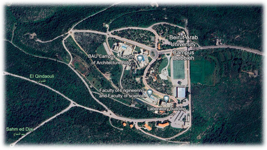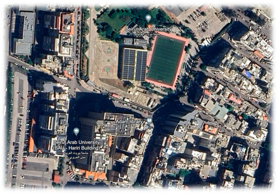The geographical boundaries of Beirut and Debbieh campus are illustrated in Figure 1 and Figure 2, respectively.