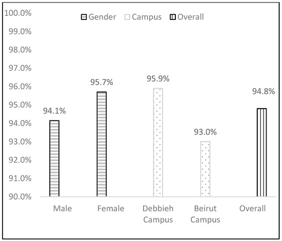 A bias was observed towards users from the Debbieh campus (62.75%) compared to users from the Beirut campus (37.25%), whereas in the BAU population, 69.9% of the students are from the Beirut campus, and only 30.1% are from the Debbieh campus. The sample also underrepresented graduate users, who, make up 10.8% of the student population, but only constituted 4.7% of the student respondents. Despite these biases, the overall distribution of survey respondents was deemed acceptable.