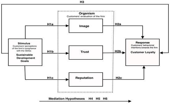 The pursuit of sustainable development has become a global priority, with the United Nations Sustainable Development Goals (UN SDGs) serving as a comprehensive framework for addressing various social, economic, and environmental challenges. Employing the stimulus–organization–response (SOR) model, this study examines the impact of customer’s perceptions of the firm’s compliance with the SDGs on customers’ perceptions and loyalty through the mediation roles of image, trust, and reputation in the customer’s evaluation of the firm in the banking sector in Turkey. To achieve these objectives, a quantitative research approach was used, and 455 valid responses were collected from retail banking customers through an online survey. Data from the study were statistically analyzed using partial least-squares–structural equation modeling (PLS-SEM). The findings reveal significant positive relationships between SDG implementation and customers’ perceptions of banking institutions’ image, trust, and reputation. Furthermore, favorable image, trust, and favorable reputation are found to positively influence customer loyalty in the banking sector. The mediation analyses confirm that each of the mediating variables partially mediates the relationships between SDG implementation and customer loyalty, underscoring the significance of these intermediate variables in shaping customers’ loyalty behaviors. This research contributes to both theoretical and practical domains by providing insights into the role of SDG implementation in enhancing customer perceptions and loyalty in the banking sector. Managerial implications are discussed, and recommendations are provided for banking institutions seeking to leverage the SDGs to strengthen customer relationships and achieve sustainable growth.
