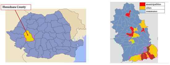 Location on Romania’s map and administrative structure of Hunedoara County. Source: [79,80].