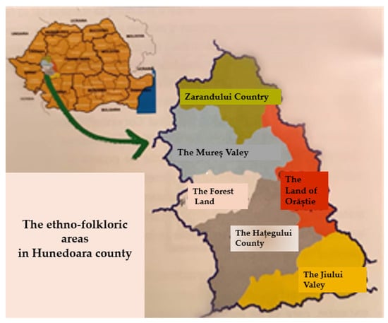 Hunedoara County is also strongly individualized in the fields of folk art and preservation of some traditions of material life, embodied in traditional crafts of high spiritual value. Moreover, each ethno-folkloric area is significantly individualized (Figure 3).