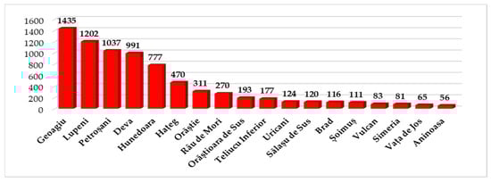 Hunedoara County is located in the western part of Romania and consists of seven municipalities, seven cities, and 55 communes (Figure 1) [78].