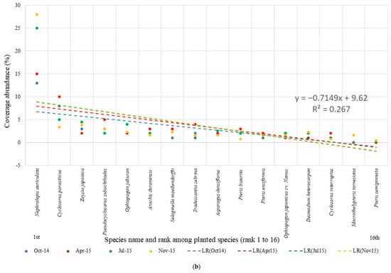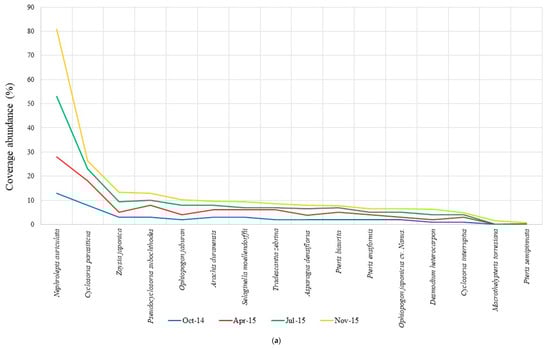| Liriope spicata | Liliaceae | 16 | 1.53% | late Sep 2014 | South-facing roof | Medium height forb | Slope, forest undergrowth | 0% |