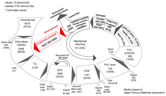 - Nakamura, S.; Nakajima, K.; Yoshizawa, Y.; Matsubae-Yokoyama, K.; Nagasaka, T. Analyzing Polyvinyl Chloride in Japan with the Waste Input−Output Material Flow Analysis Model. J. Ind. Ecol. 2009, 13, 706–717. [Google Scholar] [CrossRef]