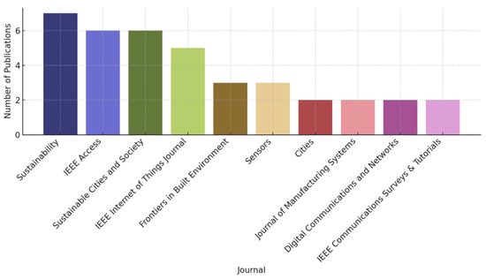 The data captured in this visualization allows us to discern these journals’ pivotal role in shaping the field’s discourse. It becomes evident that journals such as ‘Sustainability’ and ‘IEEE Access’ lead the pack with the highest number of published articles, suggesting their centrality to the dissemination of new findings and theories. Other noteworthy journals follow, each contributing significantly to the spread of knowledge within the academic community. This chart reflects the output of these journals and implicitly suggests the areas within the field that are receiving the most attention, guiding researchers toward the most influential platforms for their work.
