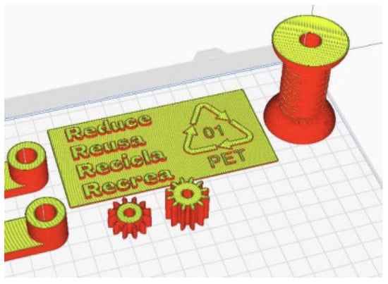 In conclusion, the utilization of rPET filament in 3D printing has a beneficial impact on the attainment of the SDGs, as it facilitates a reduction in the carbon footprint and plastic waste, encourages CE, stimulates innovation, and enhances accessibility and the sustainability of production. Furthermore, this project was developed in the classroom and supported the challenge posed, with the objects created using the rPET filament destined for the teaching–learning process and the promotion of the social values and inclusion of the students.