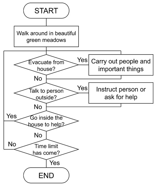 - Scoring system:To enhance the gameplay from the point of gamification, the player receives a score if they behave or direct others correctly. Table 1 details the actions that contribute to earning points. As shown in Table 1, actions directly related to saving people’s lives yield more points. In addition, players are also required to successfully evacuate themselves. In this study, we did not analyze the score of each participant.