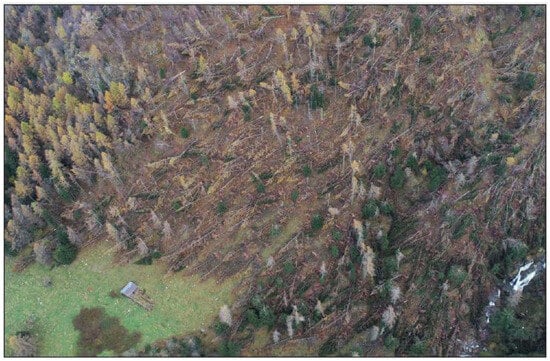 Example image of the devastation of Vaia, relating to the Remotely Piloted Aircraft Systems (RPAS) survey carried out in the Grigna Valley (province of Brescia) [15].