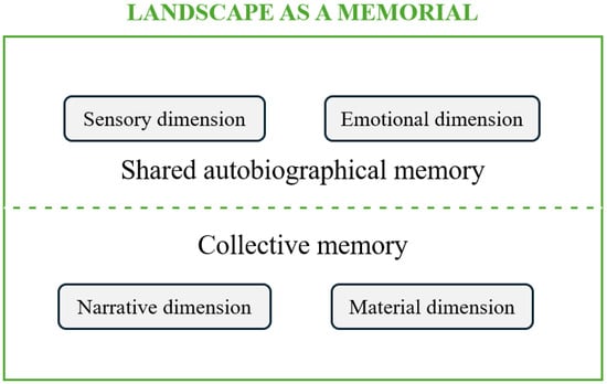 Zavar and Schumann (2019) underscored the primacy of place-based commemorations in preserving cultural memories and prompting the restoration of relevant places through imagination and emotional engagement [14]. Both the built environment—with its cultural artefacts such as museums and monuments—and geological, natural, and atmospheric elements deserve attention as anchors and means of collective remembering, e.g., [63], with the potential to become ‘sites of memory’ [62]. However, natural elements have seldom been considered as active agents of remembering [10]. Some notable exceptions can be found in studies on hybrid community practices engaging trees and people in citizen-led living memorials of Hurricane Katrina, e.g., [64].