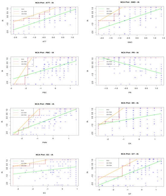 The statistical properties of PLS-SEM produce quite robust outputs in the analysis of non-normally distributed data [91]. As mentioned earlier, since multivariate normality could not be established, we employed PLS-SEM. While PLS-SEM can validate sufficiency (should have) conditions, it is not capable of testing necessity (must have) conditions [89]. Therefore, this study also conducted NCA to complement the findings from SEM. NCA is an analytical tool used to identify specific conditions that must be fulfilled to achieve a desired outcome [27]. If the necessary conditions are not present, the desired result will not occur [30]. NCA can determine the conditions necessary to produce a certain output and the extent to which they must occur without requiring prior calibration of the data [27].