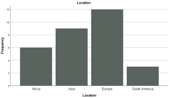 This review also reviewed important sources of data from various countries. The review aimed to focus on most of the areas to cover a larger geographical area. The reviewed papers were mainly from countries in Asia, Europe, Africa and South America. The division of geographical location was divided by focusing on different regions by merging the countries into those regions. Below, Figure 5 shows the division of areas like Asia, Europe, Africa and South America.