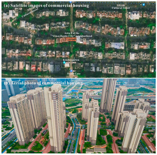 Commodity housing (Figure 1) refers to the housing developed by a qualified real estate development enterprise after obtaining the land use right by way of transfer under the condition of market economy (the general service life is 70 years) [48], which is different from the unit housing under the rationing system in the planned economy period. Commercial housing differs from business housing in that the former is used for residential purposes while the latter can be used for commercial purposes. It should be noted that each commodity housing project pointed out in this study is a community.