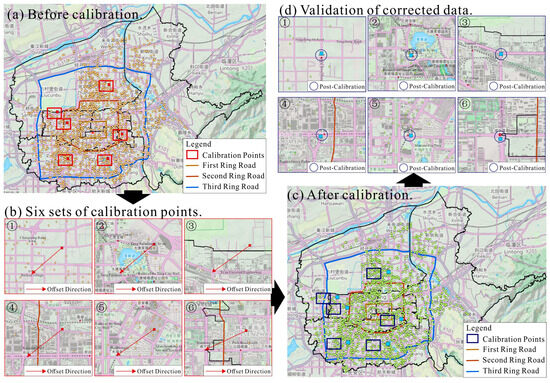 In the data validation session, we calibrated all the study data by selecting six sets of calibration points outside the range of the study data. After calibration, we randomly selected the data points to match the distances between the data points and the actual points on the map, and found that the data calibration was relatively satisfactory (Figure 3).