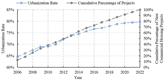 Cumulative percentage of new commercial housing projects and urbanization rate in Xi’an.