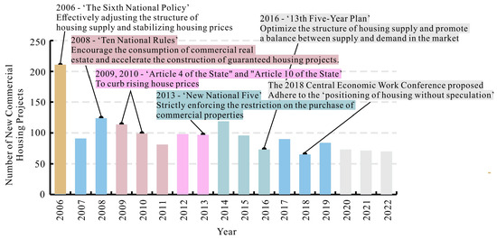 Analysis of housing-related policies and the number of commercial housing projects in Xi’an.