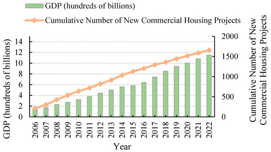 Cumulative percentage of new commercial housing projects and GDP in Xi’an.