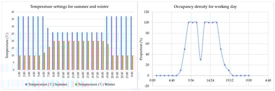 Temperature settings for air-conditioning units in winter and summer (left) and occupancy rate settings (right).