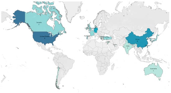 Geographical distribution of the included studies.