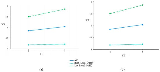 High RU complicates information processing [66]. Under such conditions, the positive impact of information resource integration, derived from SCI, on SCR is significantly diminished. This is because changes in policies and regulations disrupt normal business operations [67]. Additionally, increased uncertainty in government regulations raises the cost and development time of emerging technologies, negatively affecting enterprises’ technological upgrades [68]. In summary, it proposes the following hypotheses: