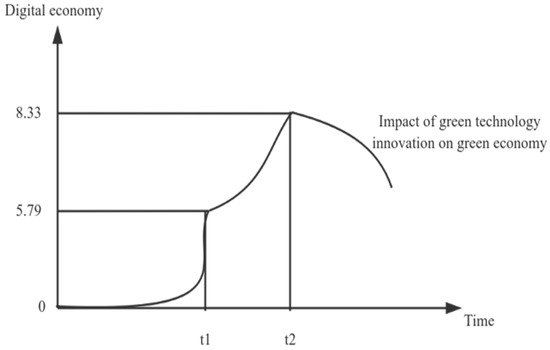 Some researchers have established that there exists an intricate and dynamic correlation between the digital economy and the green economy [12]. The digital economy plays a significant role in fostering the sustainability of digital industrialization and the digitization of various industries by gauging the magnitude of the digital economy. By facilitating the profound amalgamation of digital technology with sectors, the digital economy enables the deep integration of these industries. Consequently, the sustainability of the digital economy contributes to the overall sustainability of various sectors [13]. In contrast, the green economy represents a novel economic paradigm with a market-oriented approach. It is rooted in the foundations of the traditional industrial economy and is dedicated to achieving a harmonious balance between economy and environment. It embodies a sustainable state that emerges from the industrial economy, catering to the imperative requirements of environmental preservation and human well-being [14]. Consequently, the sustainability of the green economy relies on the bolstering of advanced and emerging technologies, particularly in the realm of green technology innovation. However, the digital economy plays a vital role in providing a crucial technological foundation [15]. In this context, a multifaceted and dynamic interconnection emerges between the digital economy and the green economy, forming a complex relationship of mutual influence and dependence.