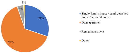 In all, 67% of the surveyed older adults inhabited apartments, while 32% lived in single-family homes, semi-detached houses, or terraced houses (Figure 4).
