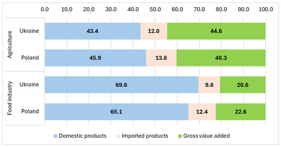41]. In the Ukrainian food industry, intra-sectoral cooperation will also develop. It means that the share of products in the food industry and used in the sector for further processing will increase. It may be accompanied by a decline in the importance of agricultural products in the material supply of the food industry and an increase in the importance of other industrial products. As compared to Poland, the share of the latter is already high. This indicates a higher level of technological advancement in the food industry in Poland than in Ukraine. The development of Ukraine’s food industry may be also accompanied by an increasing import dependence of its gross output. Baer-Nawrocka and Mrówczyńska-Kamińska highlight the possible mutual interdependencies [